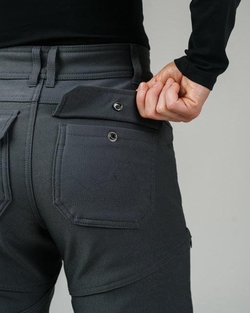 The Sitka Pant has a mid-to-high rise that sits comfortably an inch or two above your natural waist. It’s flattering, functional, and moves with you whether you’re hiking, climbing, or running around town.